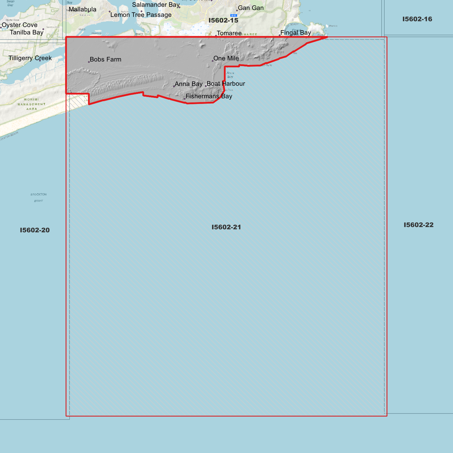 Locations within the area; Boat Harbour, Anna Bay, One Mile, Fishermans Bay, Bobs Farm, Pindimar, Bundabah, Nerong, North Arm Cove, Tea Gardens, Hawks Nest, Cherry Tree, Gan Gan, Nerong Waterholes, Nugra, Winda Woppa, Monkey Jacket, Shearwater, North Pindimar, South Pindimar, Gundaine, Coweambah, Viney Creek, Tomaree, Corlette, Port Stephens, Fingal Bay, Lemon Tree Passage, Nelson Bay, The Branch, Tahlee, Taylors Beach, Mallabula, Salamander Bay, Shoal Bay,