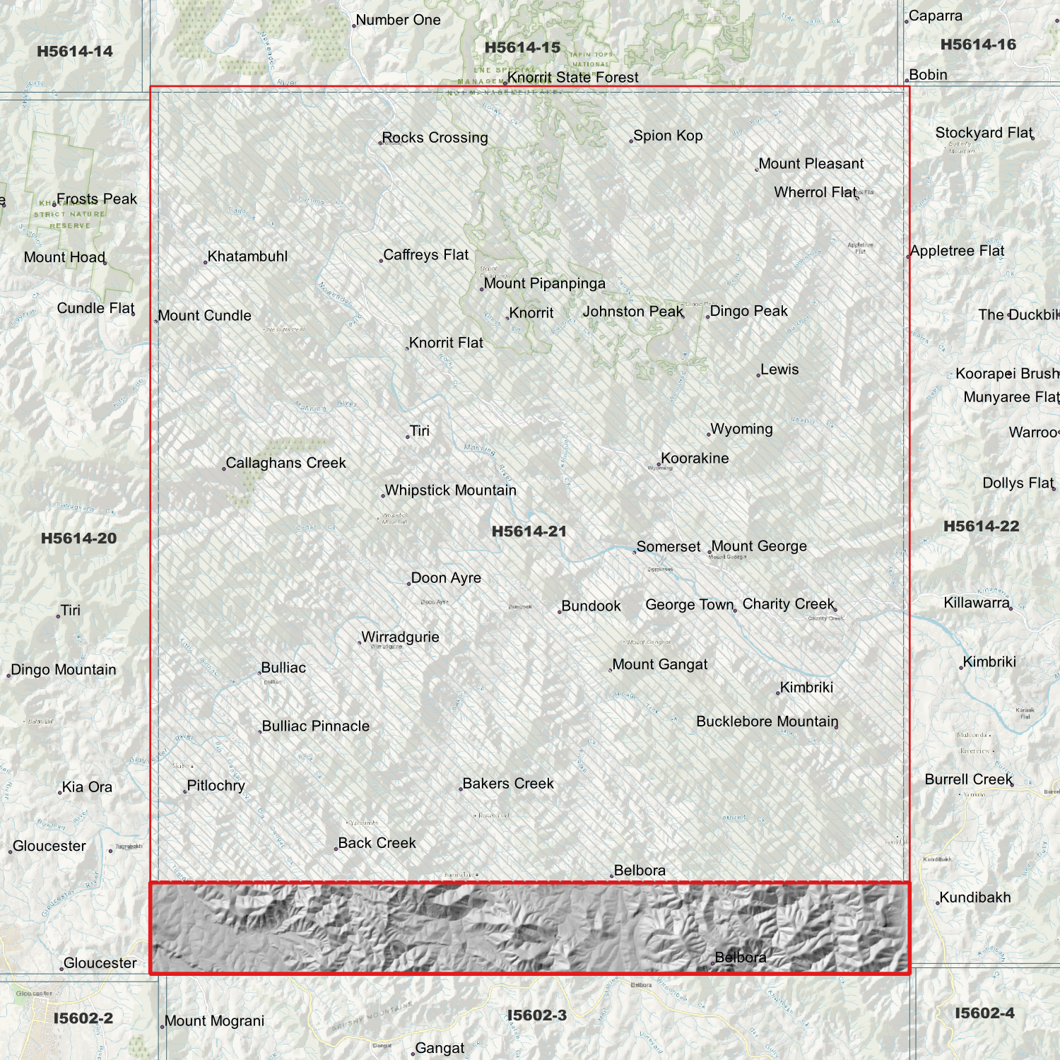 Belbora 1m DEM (H5614-21) compiled with data supplied by NSW Government - Spatial Services.