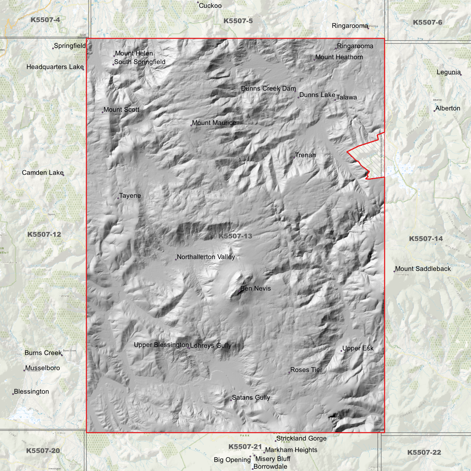 Ben Nevis 1m DEM (K5507-13) compiled with data supplied by The Department of Natural Resources and Environment Tasmania.