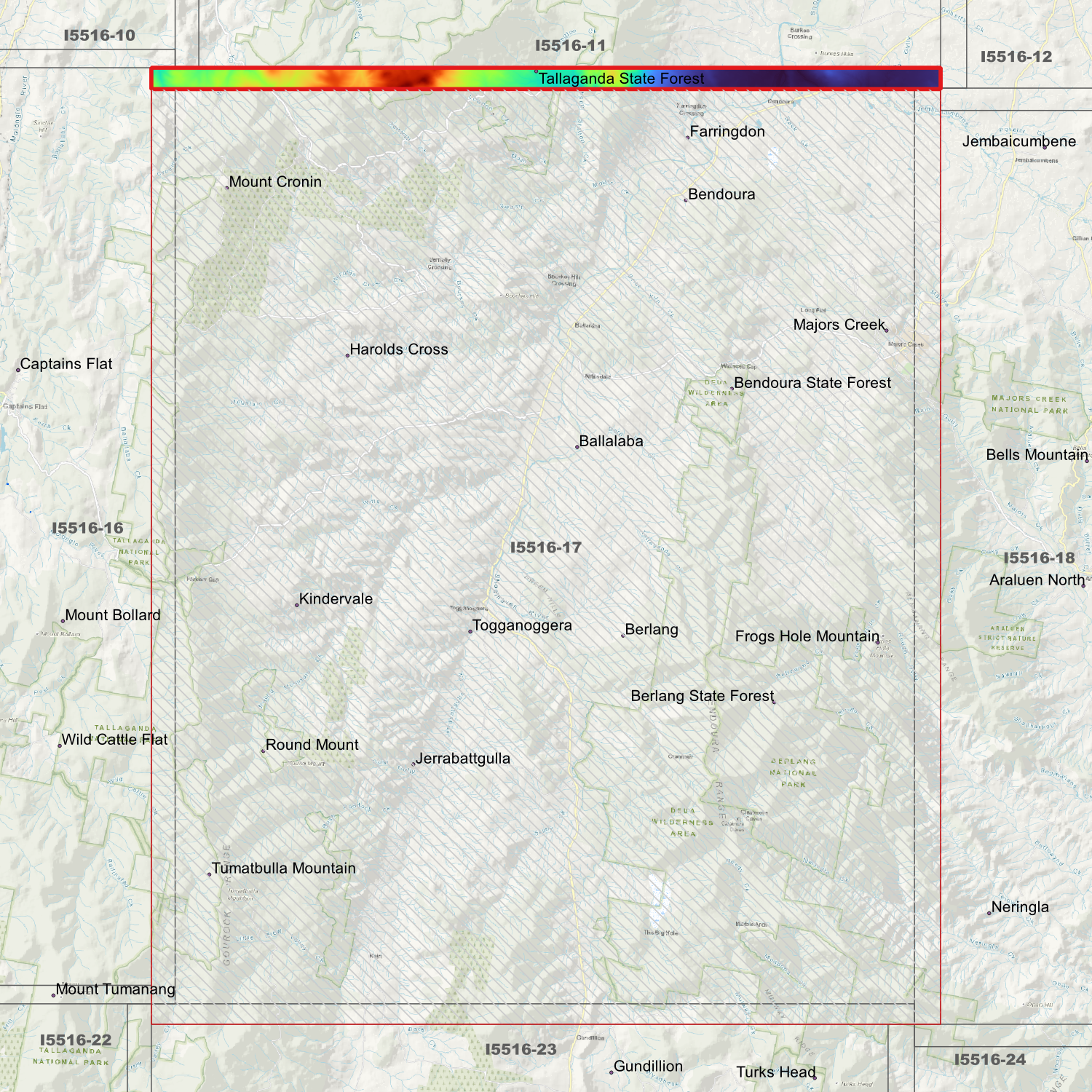 Berlang 1mDEM (I5516-17) compiled with data supplied by NSW Government (Spatial Services).