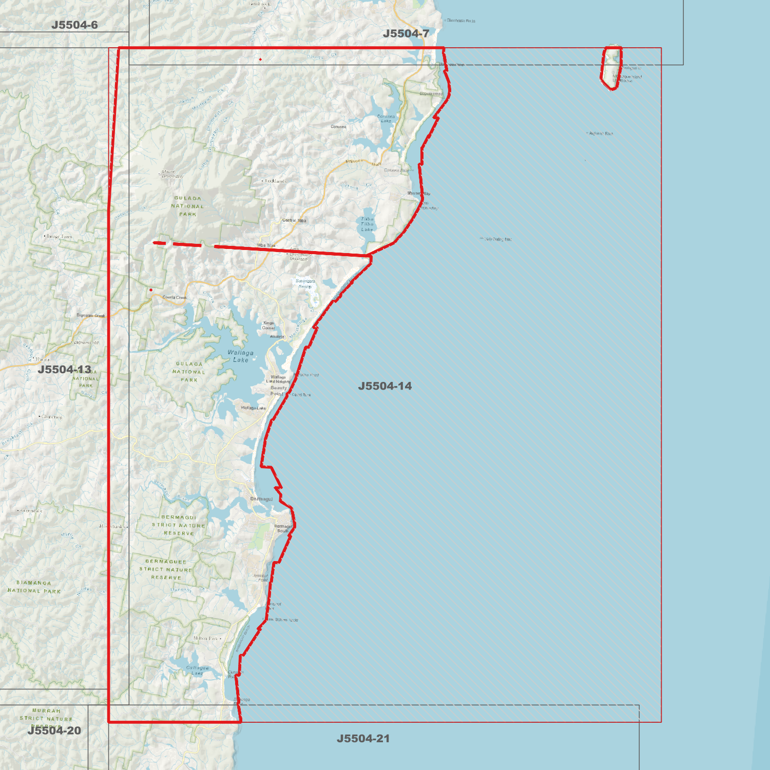 Locations within the area; Akolele, Beauty Point, Bermagui, Bermagui, Bermagui State Forest, Central Tilba, Corunna, Corunna State Forest, Couria Creek, Cuttagee, Dignams Swamp, Fairhaven, Kings Corner, Little Cuttagee Lake, Little Lake, Montreal, Mount Dromedary, Murrah State Forest, Mystery Bay, Nargal Lake, Tilba Tilba, Wallaga Lake, Wallaga Lake Heights