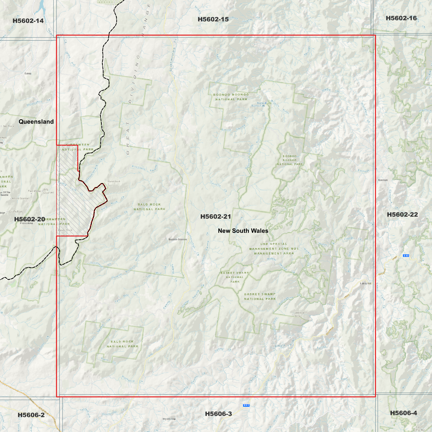 Boonoo 1m DEM (H5602-21) compiled with data supplied by CSIRO Land and Water, State of Queensland, and Spatial Services, a business unit of the Department of Customer Service, NSW
