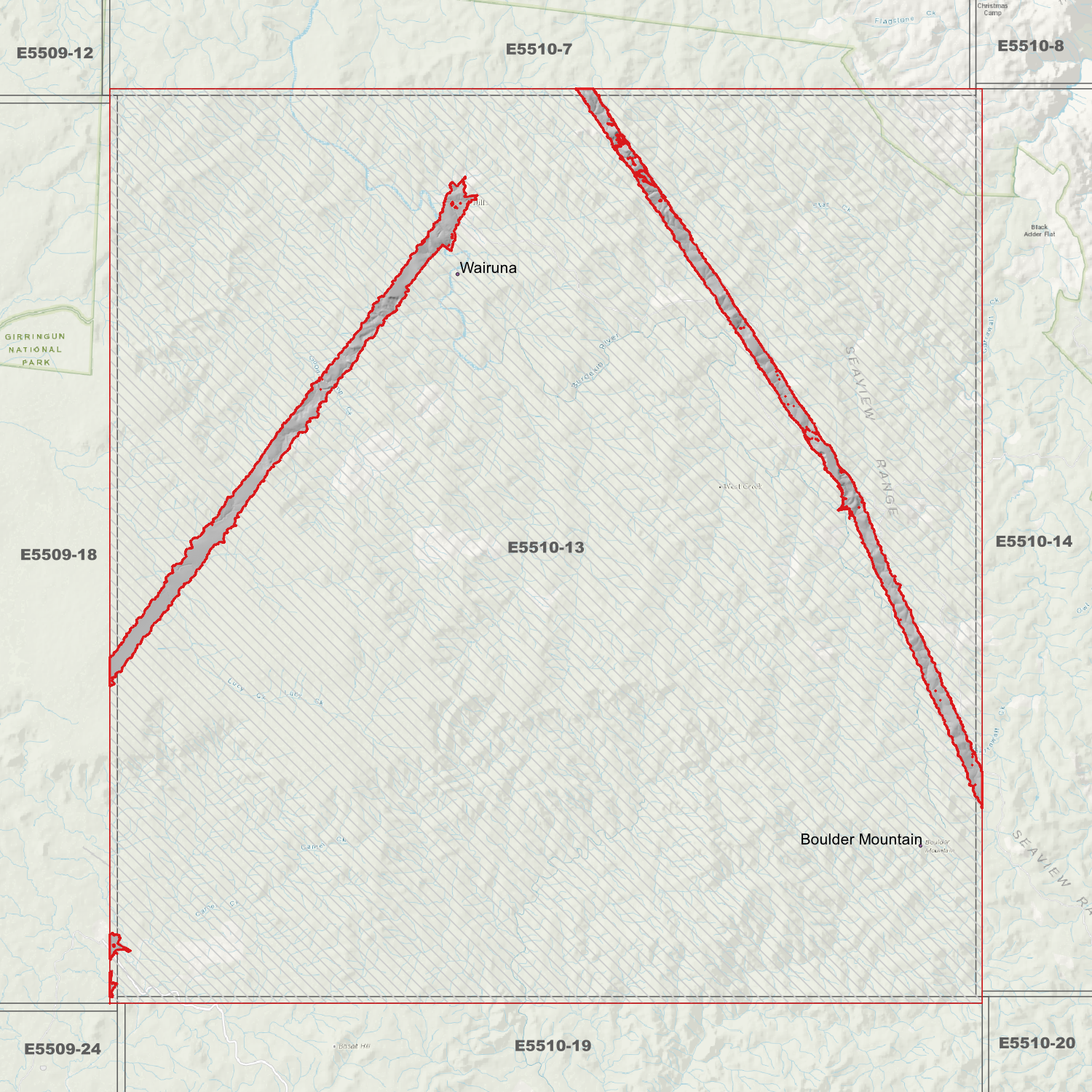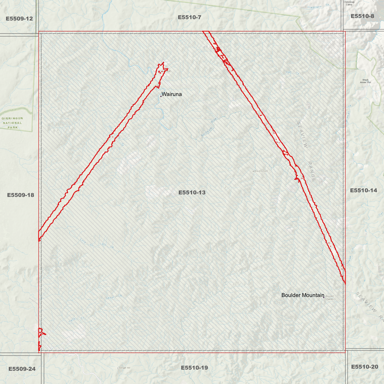 Locations within the area; Boulder Mountain, Wairuna