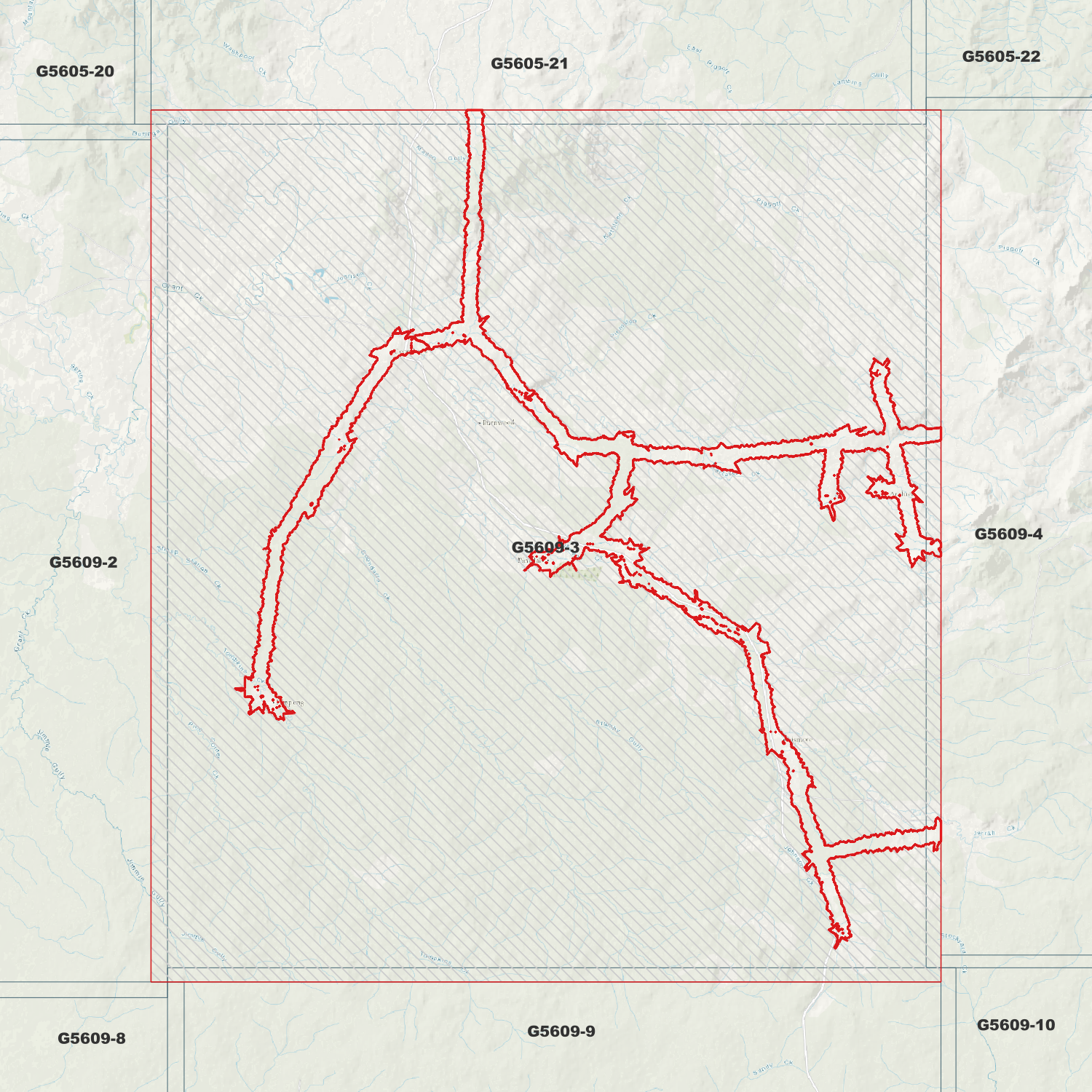 Burnwood 1m DEM (G5609-3) compiled with data supplied by Fugro Australia Pty. Ltd.