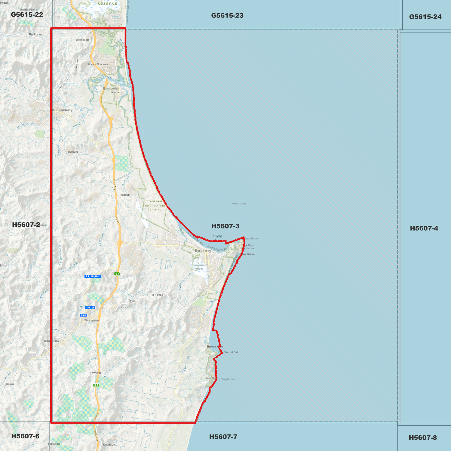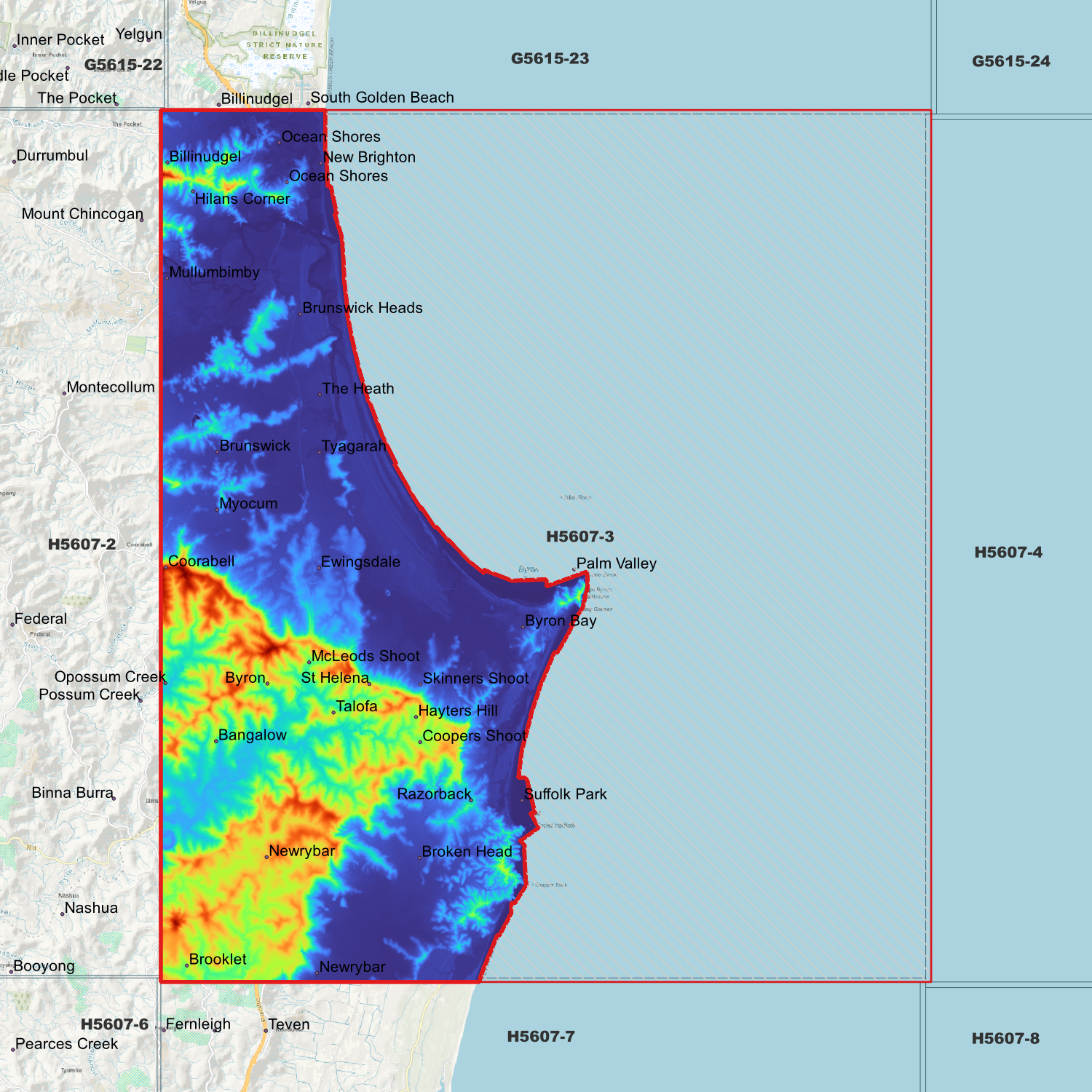 Byron 1m DEM (H5607-3) compiled with data supplied by NSW Government - Spatial Services and CSIRO Land and Water