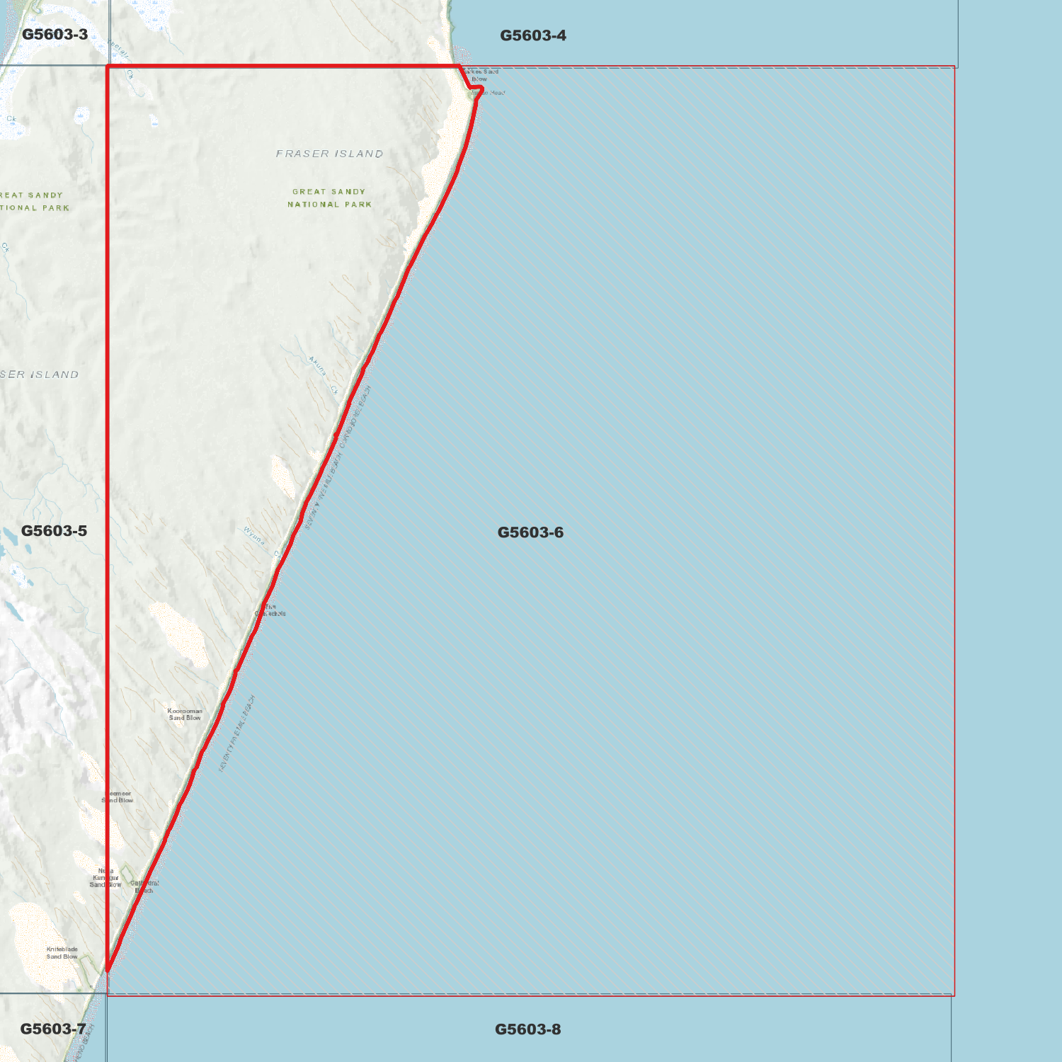 Locations within the area; Wathumba, Cathedrals, K’gari