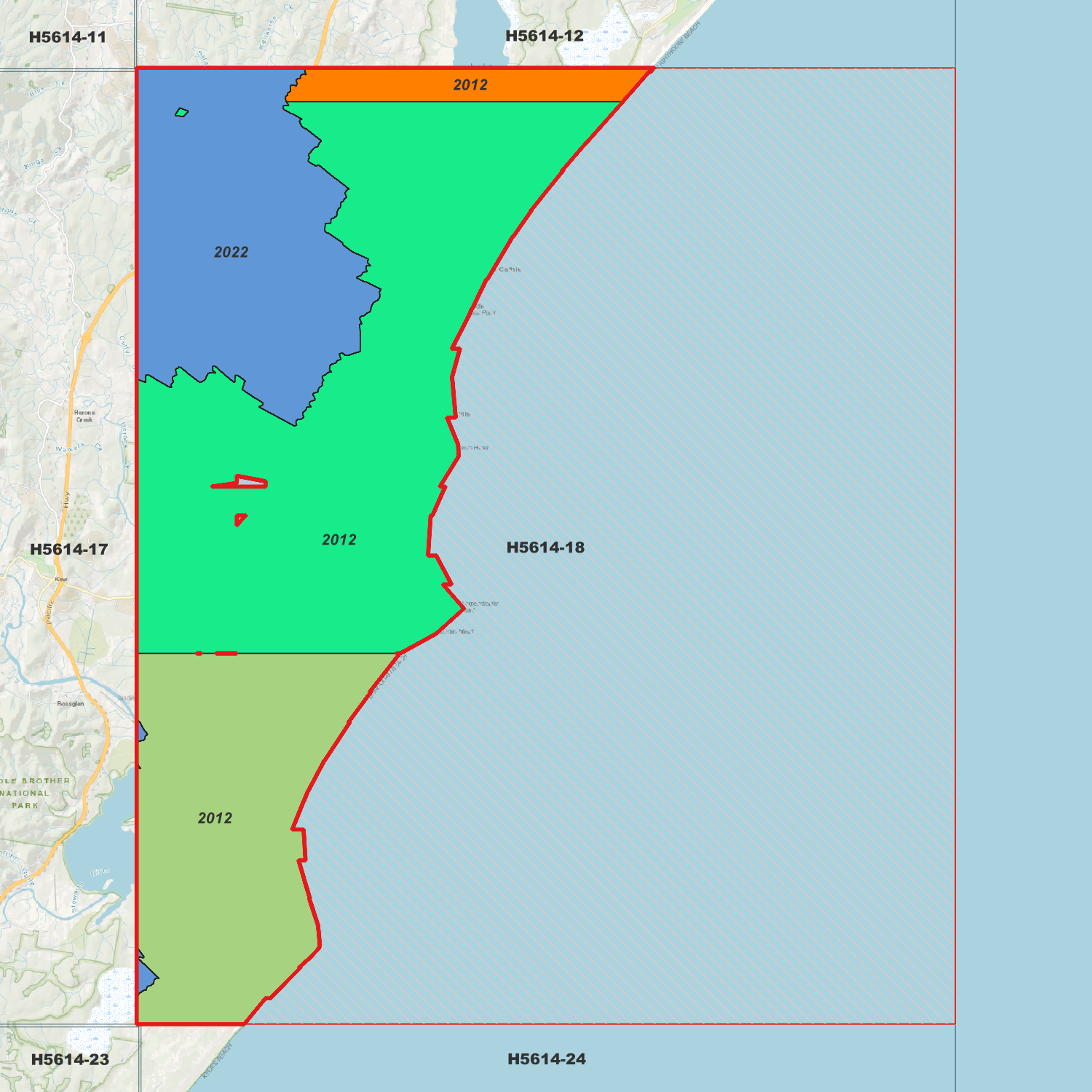 Cathie 1m DEM (H5614-18) compiled with data supplied by NSW Government - Spatial Services and NSW Government (Natural Resources Commission).
