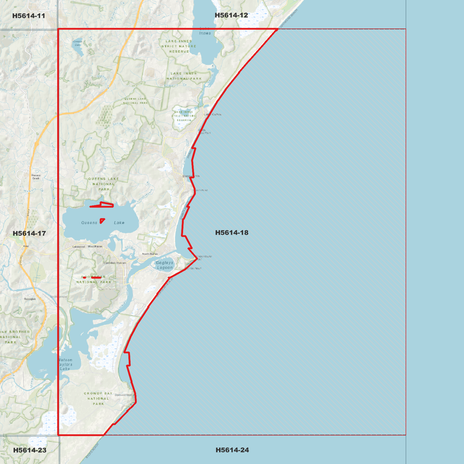 Locations within the area; The Oaks, Lake Cathie, North Brother, Camden Head, North Brother, Diamond Head, Jolly Nose, Grants Beach, Bobs Creek, West Haven, Bonny Hills, Dunbogan, Deauville, Lakewood, Laurieton, Lake Cathie, North Haven