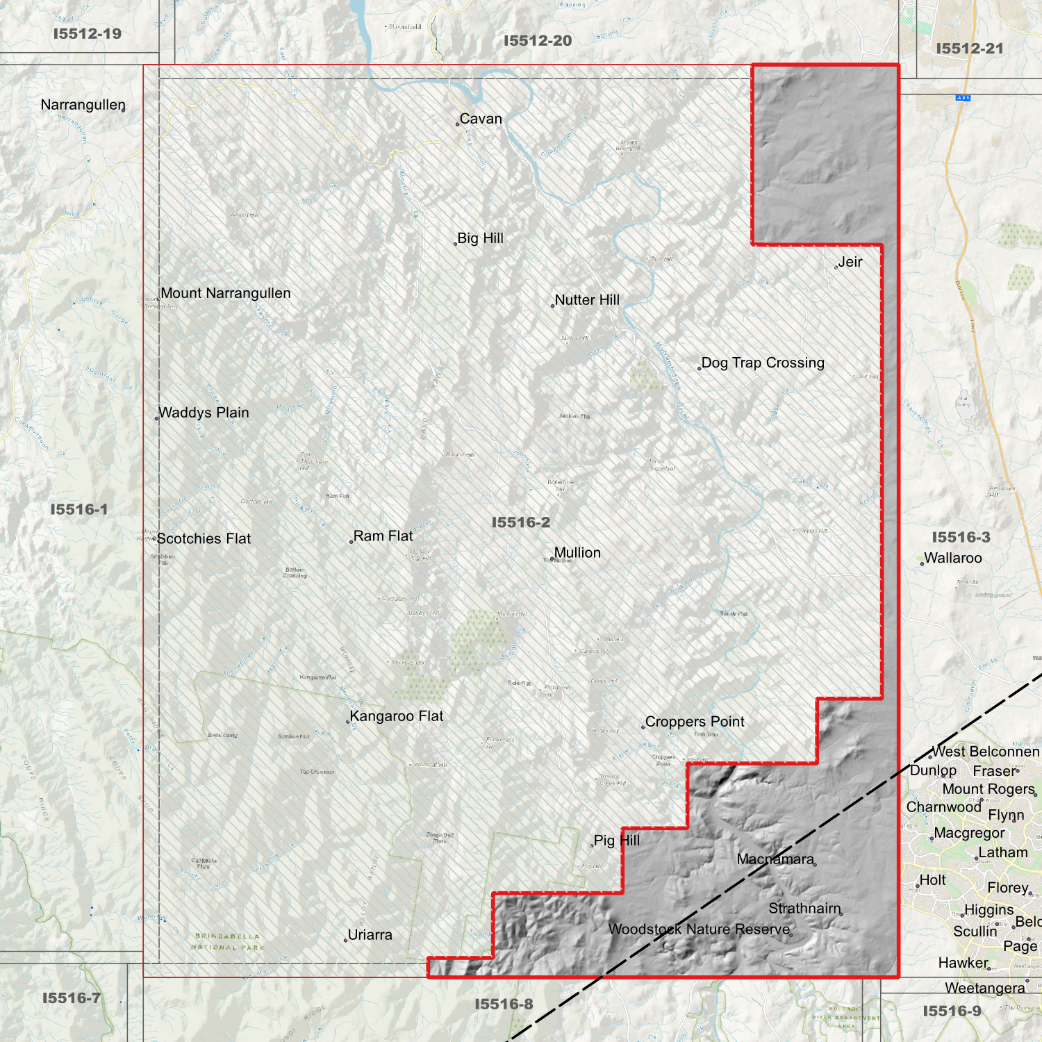 Cavan 1mDEM (I5516-2) compiled with data supplied by NSW Government (Spatial Services) and ACT Government.