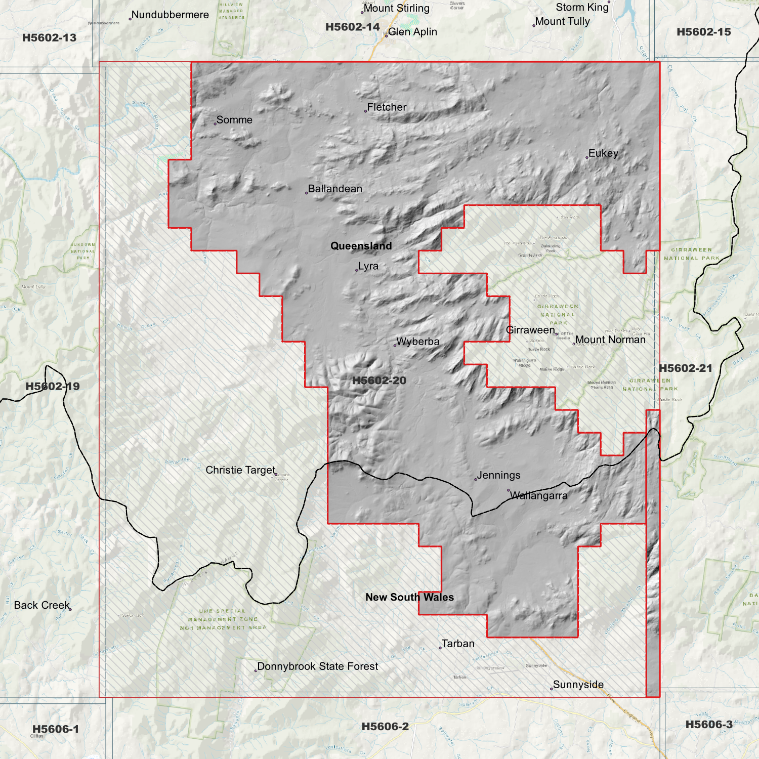 Girraween 1m DEM (H5602-20) compiled with data supplied by State of Queensland, and Spatial Services, a business unit of the Department of Customer Service, NSW