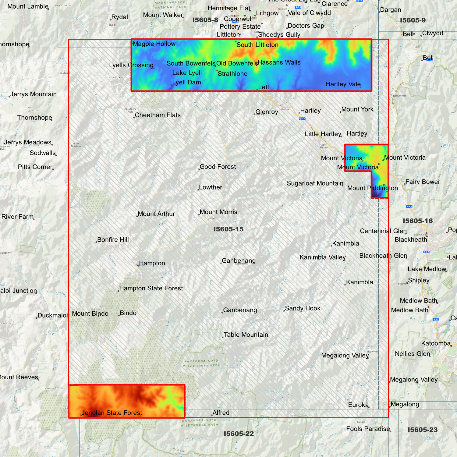 Hartley 1mDEM (I5605-15) compiled with data supplied by NSW Government - Spatial Services.