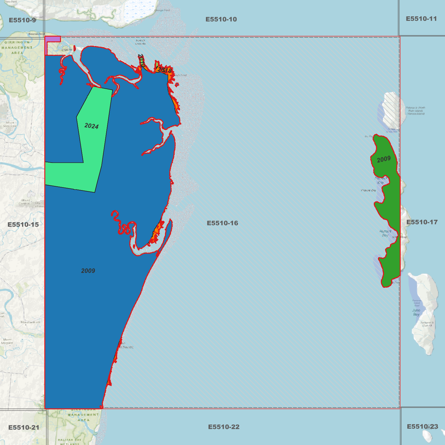 Lucinda 1m DEM (E5510-16) compiled with data supplied by State of Queensland (nrmmrrd.qld.gov.au), and State of Queensland (Dept of Environment, Tourism, Science and Innovation) (2024), and Fugro Australia Pty. Ltd.