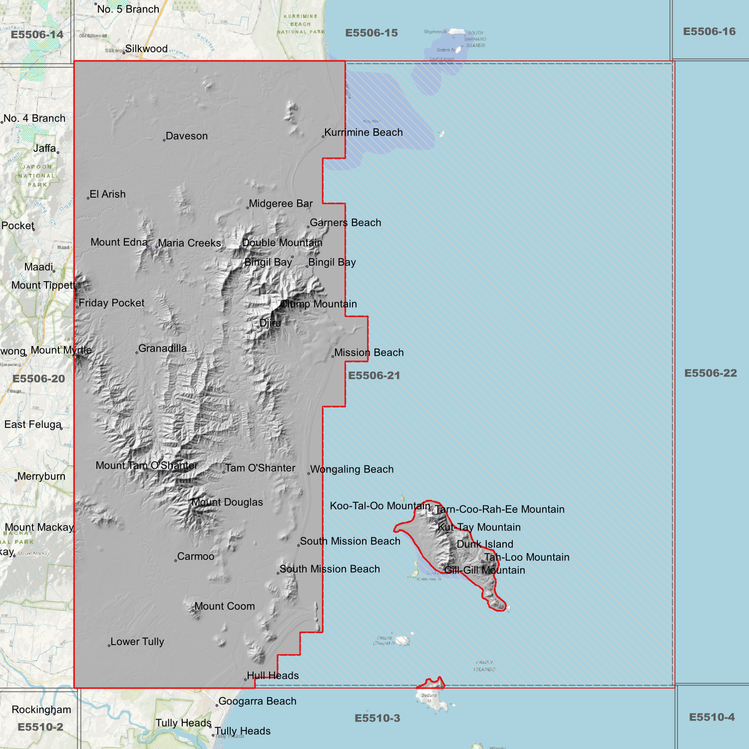 Mission Beach 1m DEM (E5506-21) compiled with data supplied State of Queensland (nrmmrrd.qld.gov.au), and State of Queensland (Dept of Environment, Tourism, Science and Innovation) (2024).