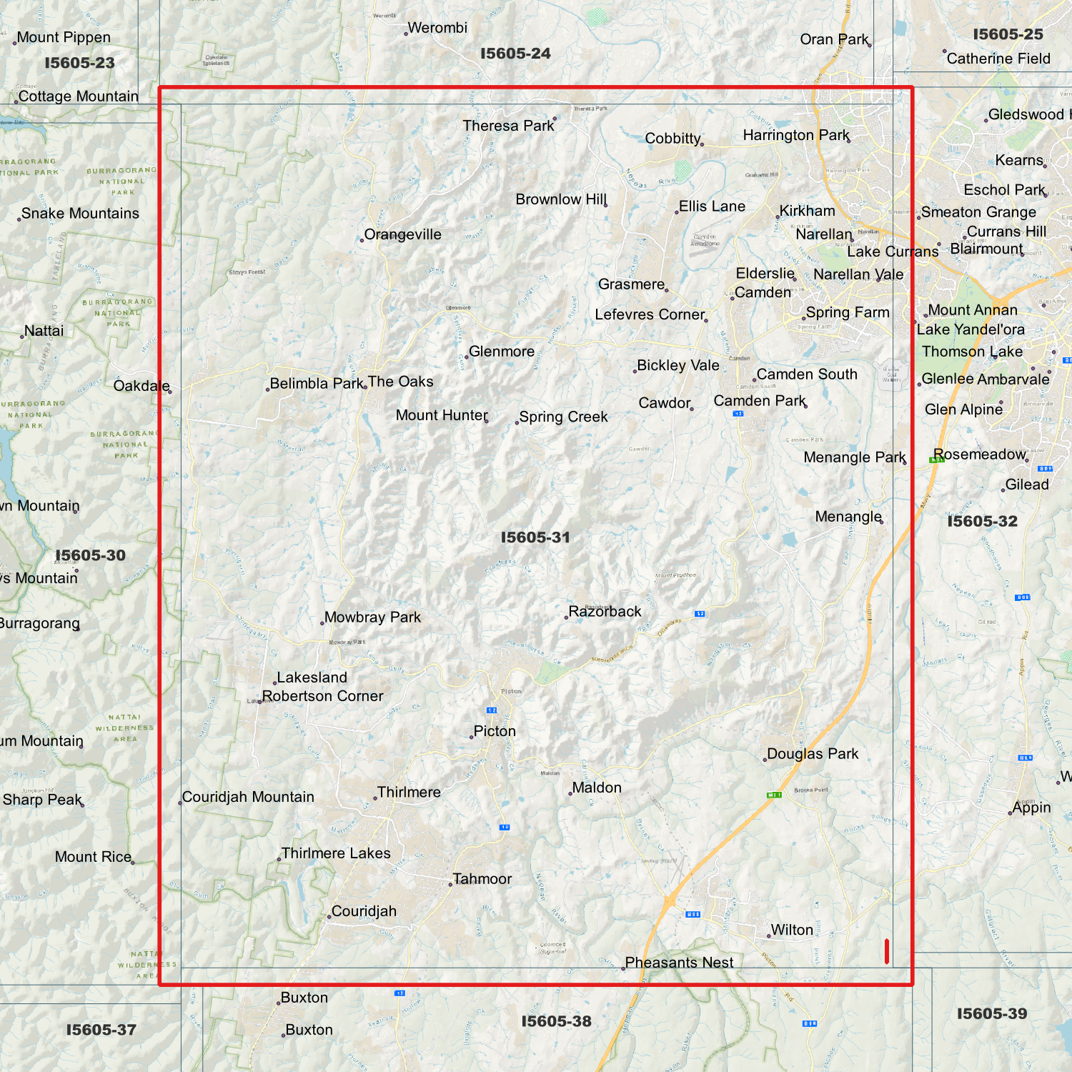 Locations within the area; Spring Creek, Robertson Corner, Lefevres Corner, Thirlmere Lakes, Couridjah Mountain, Couridjah, Burragorang, Camden, Picton, Narellan, Cobbitty, Cawdor, Couridjah, Pheasants Nest, Razorback, Camden South, Camden, Camden Park, Brownlow Hill, Douglas Park, Elderslie, Ellis Lane, Glenmore, Lakesland, Belimbla Park, Kirkham, Menangle, Orangeville, Oakdale, Picton, Tahmoor, The Oaks, Theresa Park, Thirlmere, Wilton, Maldon, Bickley Vale, Narellan, Narellan Vale, Mowbray Park, Mount Hunter, Grasmere, Harrington Park, Spring Farm
